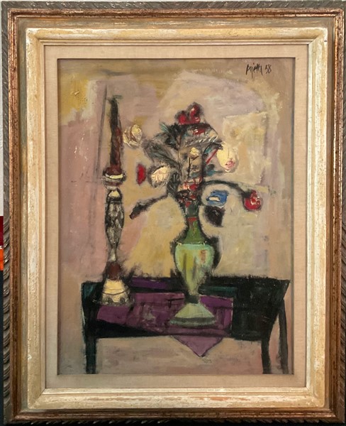 Guido Pajetta "Vaso di fiori con candela" 1958 olio su tela cm 81x60 firmato e d