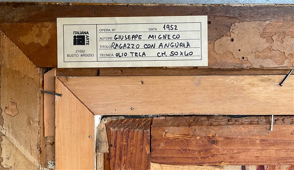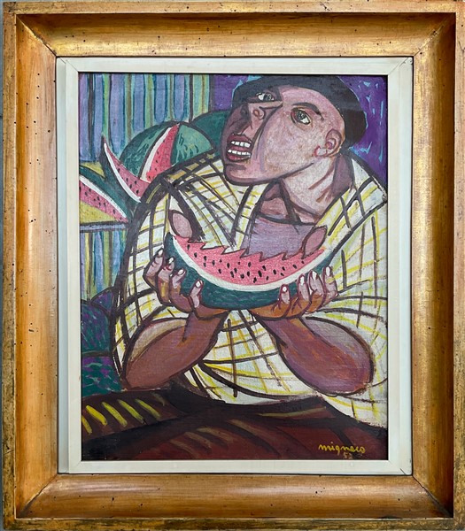 Giuseppe Migneco "Uomo con anguria" 1952 olio su tela cm 50x40 firmato e datato