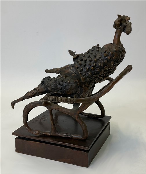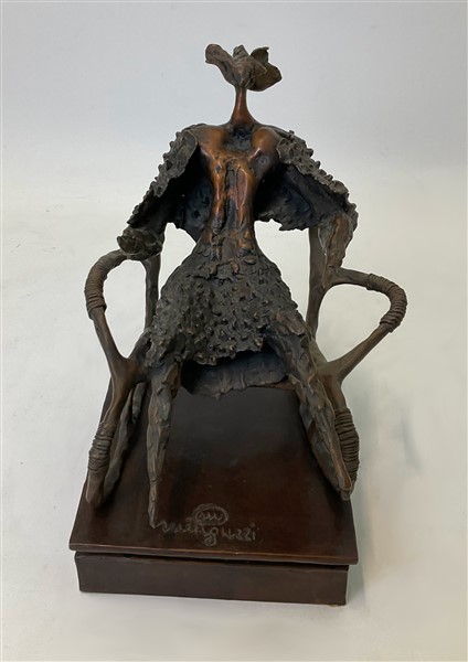 Luciano Minguzzi "Donna in poltrona" 1993 scultura multiplo in bronzo cm 24x15x1