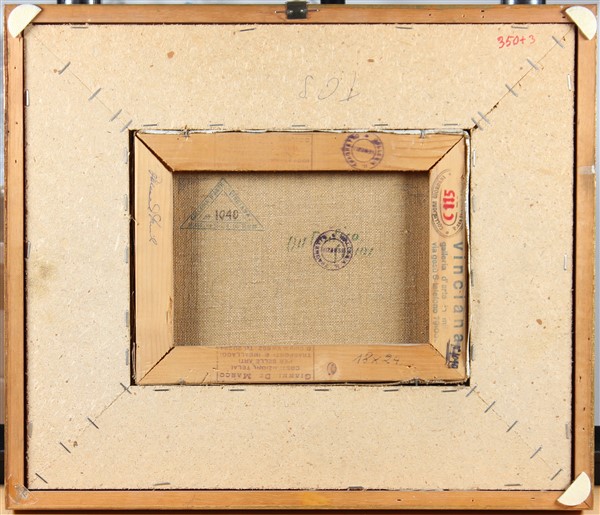 Galleria d'Arte Il Traghetto, Venezia (timbro al retro); Galleria d'Arte Vinciana, Milano (timbri al retro); Collezione privata, Torino