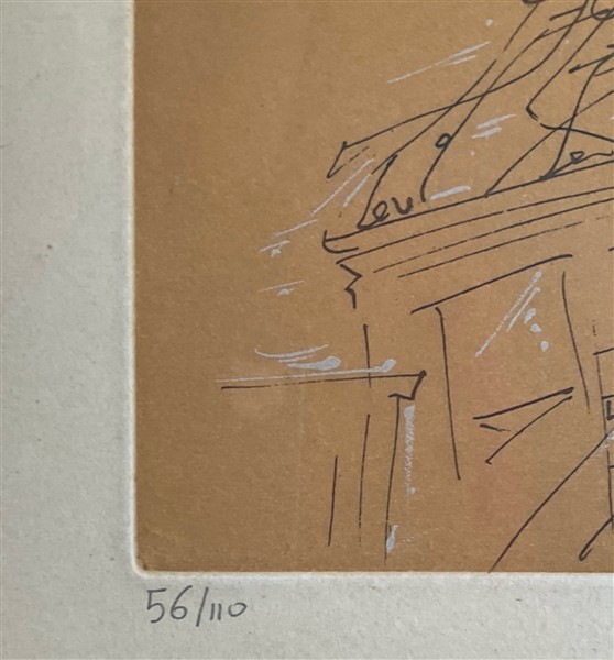 firmata e numerata 56/110 in basso a matita; dalla cartella "I surrelisti" a cura di Attilio Codognato e Gabriele Mazzotta, Edizioni di Grafica surrealista. In cornice