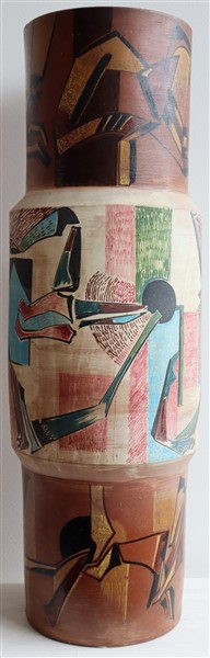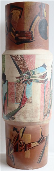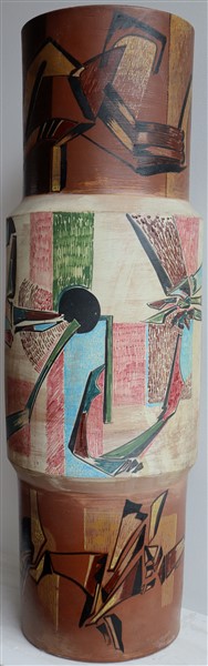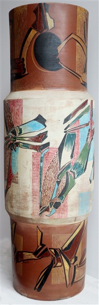 Lot 2213 | Mario Rossello Grande vaso cilindrico in terracotta dipinta in policromia. Manif