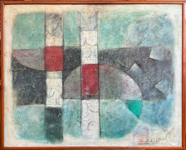 Ibrahim Kodra "Composizione" anni '60 olio su tela cm 79x99,5 firmato in basso a