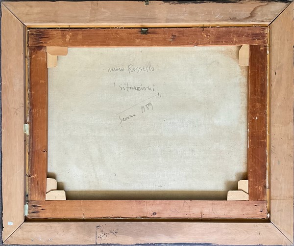 Mario Rossello "Situazioni" 1959 olio su tela cm 66x81 firmato, titolato, datato