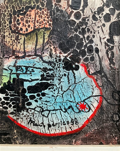 Mario Persico "Senza titolo" 1958 tecnica mista su tela cm 49x49 firmato e datat