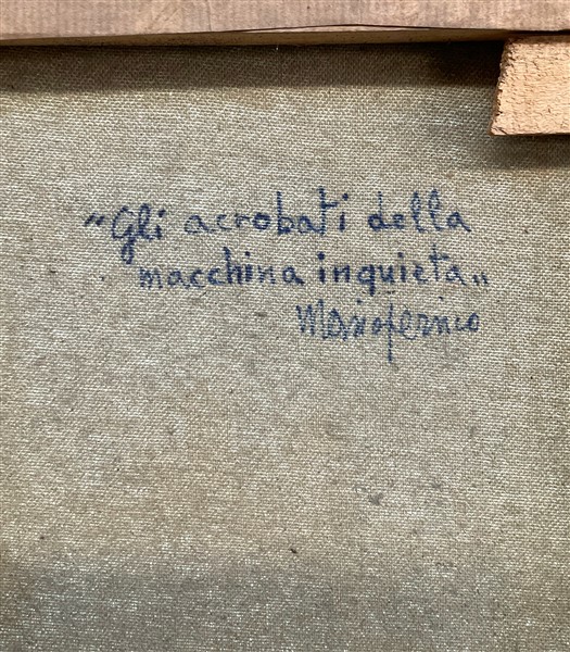 Mario Persico "Gli acrobati della macchina inquieta" 1959 tecnica mista su tela