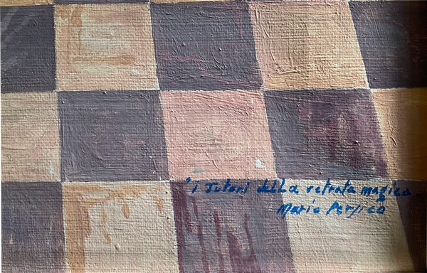 Mario Persico "I tutori della vetrata magica" tecnica mista e collage materico