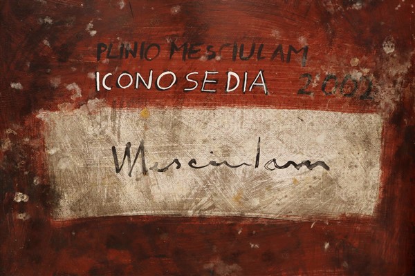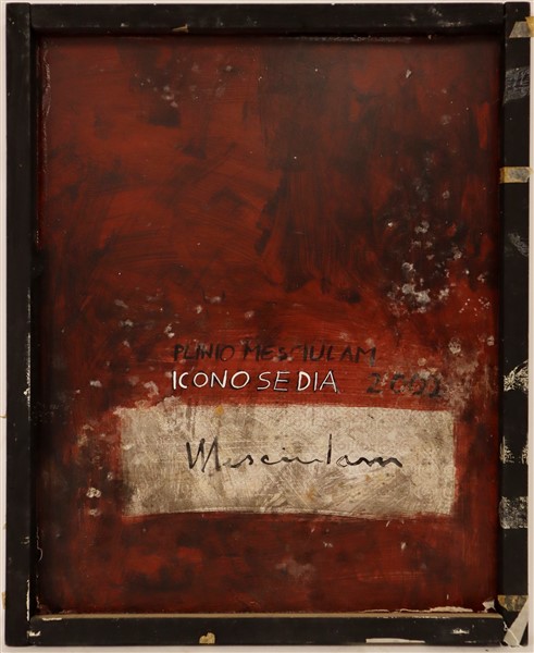 Plinio Mesciulam "Iconosedia" olio su tela applicata su masonite cm 100x80 firm