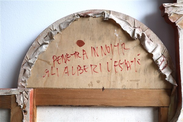 Fernando De Filippi "Penetra in noi..." 1989 olio su tela, alcune tele applicate