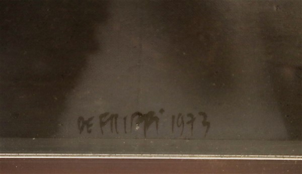 firmato e datato in basso a destra; firmato, datato e titolato al retro. In cornice (difetti)
