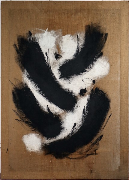 Salvatore Emblema "Emozione avviluppata" 1989 terra vesuviana su juta cm 180x130