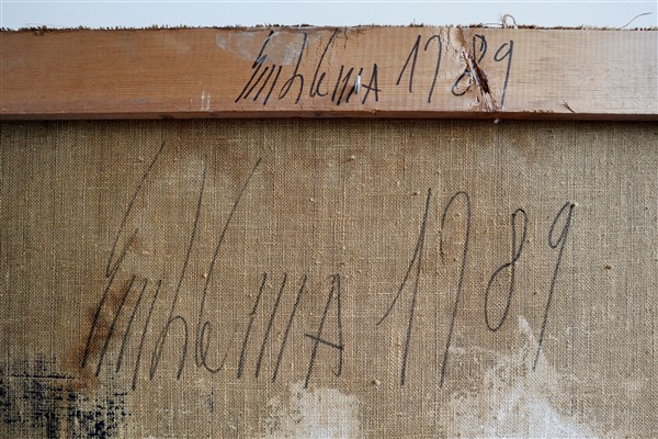 firmato e datato al retro (difetti e restauri)