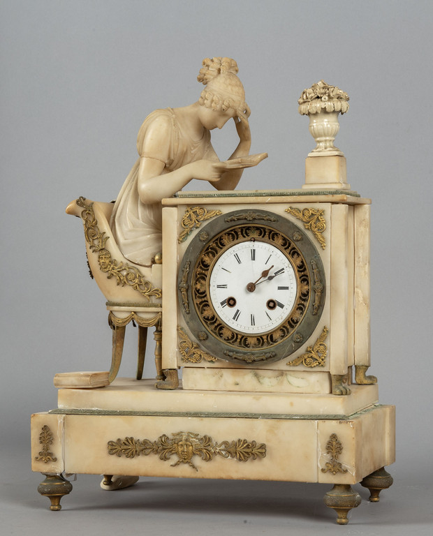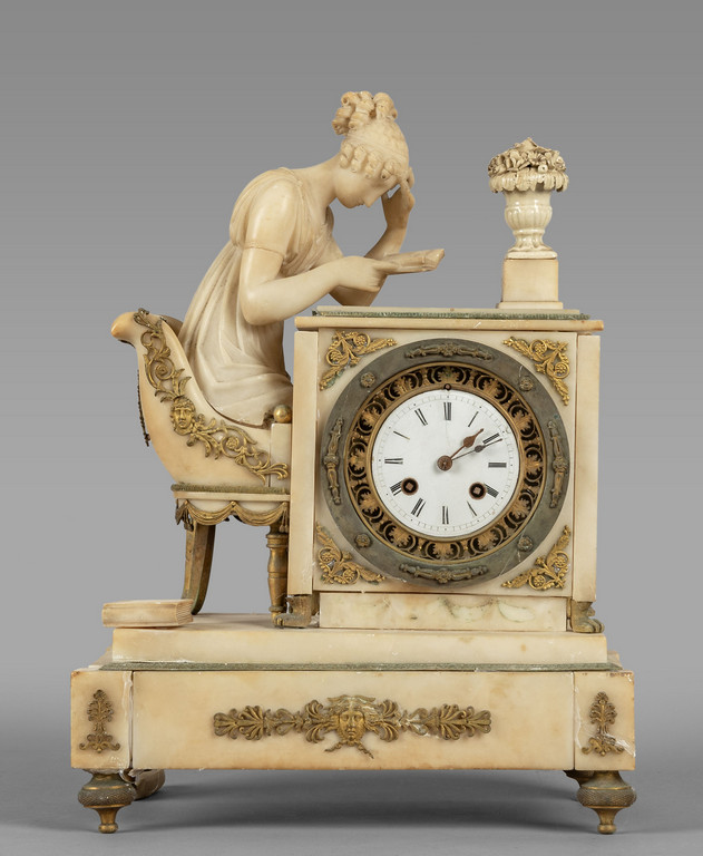 Orologio Carlo X in alabastro e bronzo dorato raffigurante fanciulla che legge un libro Francia I metà sec.XIX