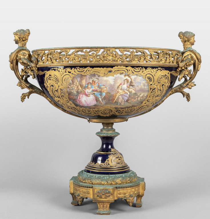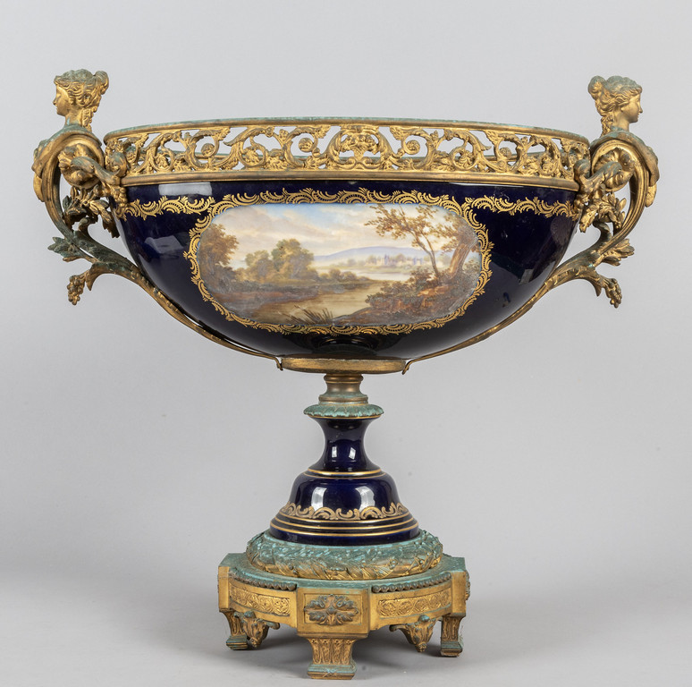 Grande alzata in porcellana di Sevres ricca decorazione in bronzo Francia fine sec.XIX