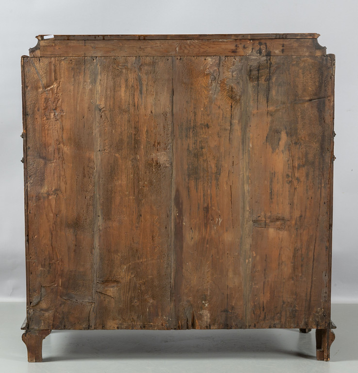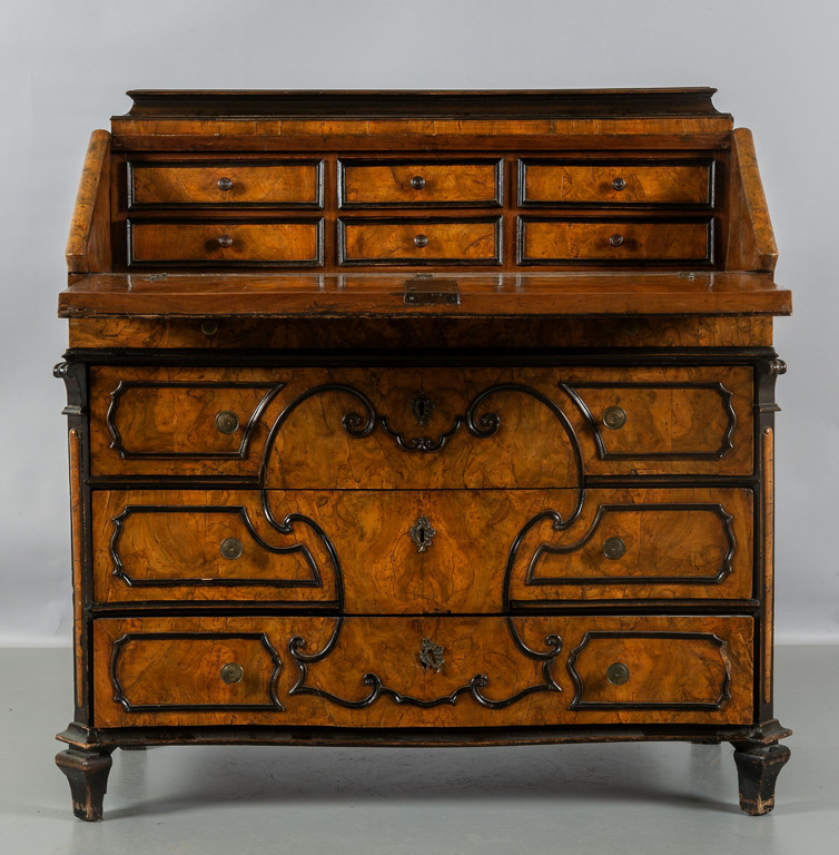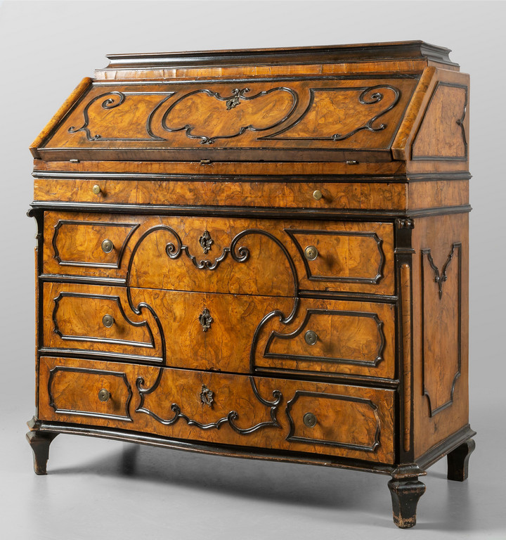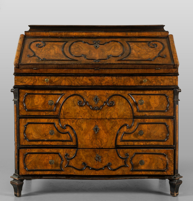 Ribalta Luigi XIV movimentata sul fronte e lastronata in radica con cornicette nere Lombardia I metà sec.XVIII