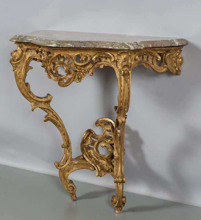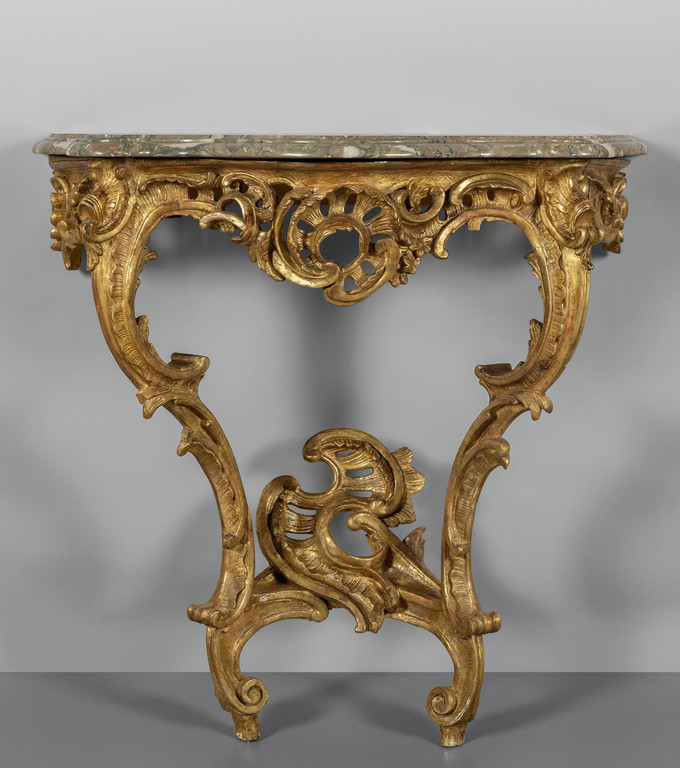 Consolina Luigi XIV in legno intagliato e dorato piano in breccia Roma sec.XVIII