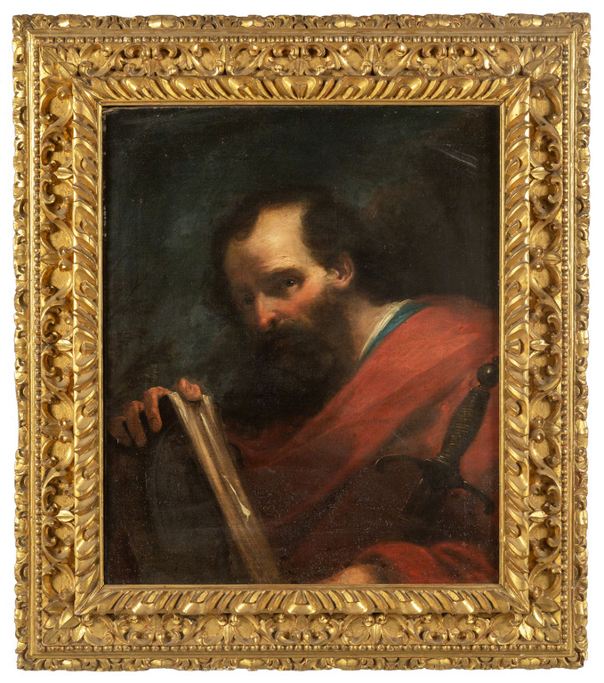 Scuola genovese sec.XVII 'San Paolo' olio bella cornice in legno intagliato e dorato sec.XIX