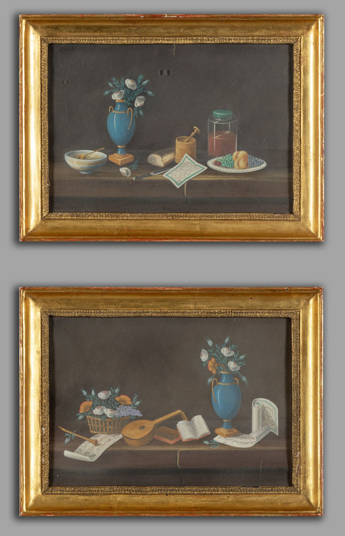 'Natura in posa' coppia di gouaches su carta