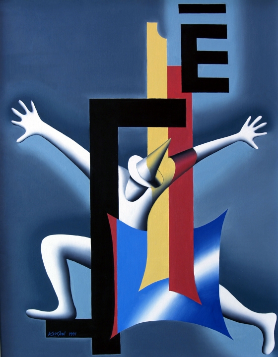 KOSTABI MARK (Los Angeles 1960) "Kostabi vowel reverse" 1991 Olio su tela cm....