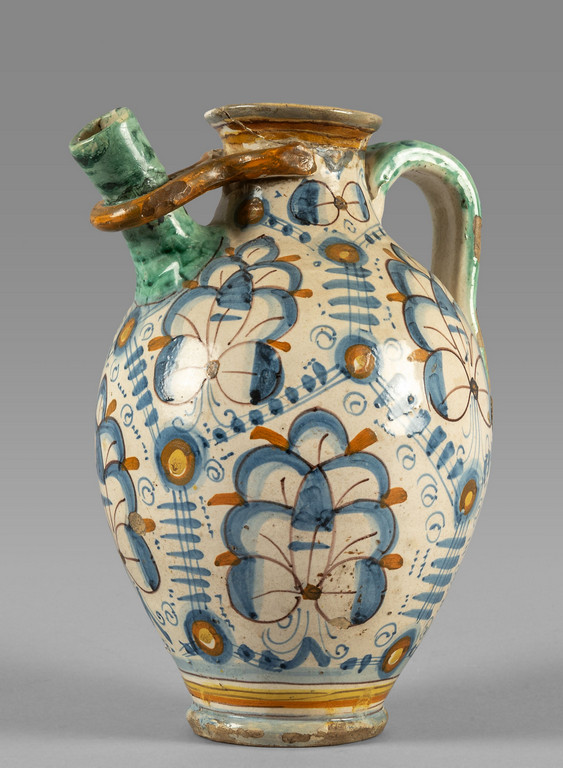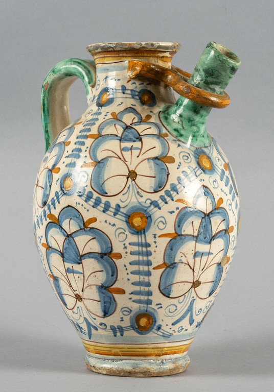 Versatoio in maiolica policroma con disegni naturalistici Montelupo sec.XVI