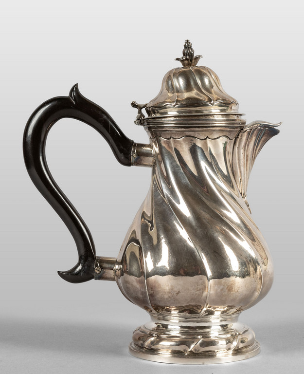 Caffettiera Luigi XV in argento fuso sbalzato e cesellato Punzone della Torretta anno 1784 Genova sec.XVIII