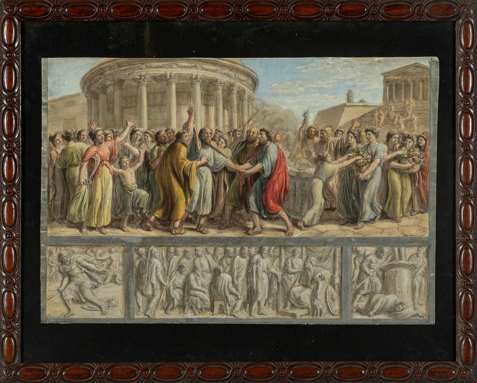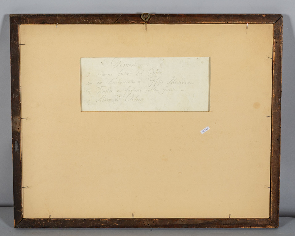 'Episodio della vita di Demostene' disegno acquarellato f.to e d.to a ds.