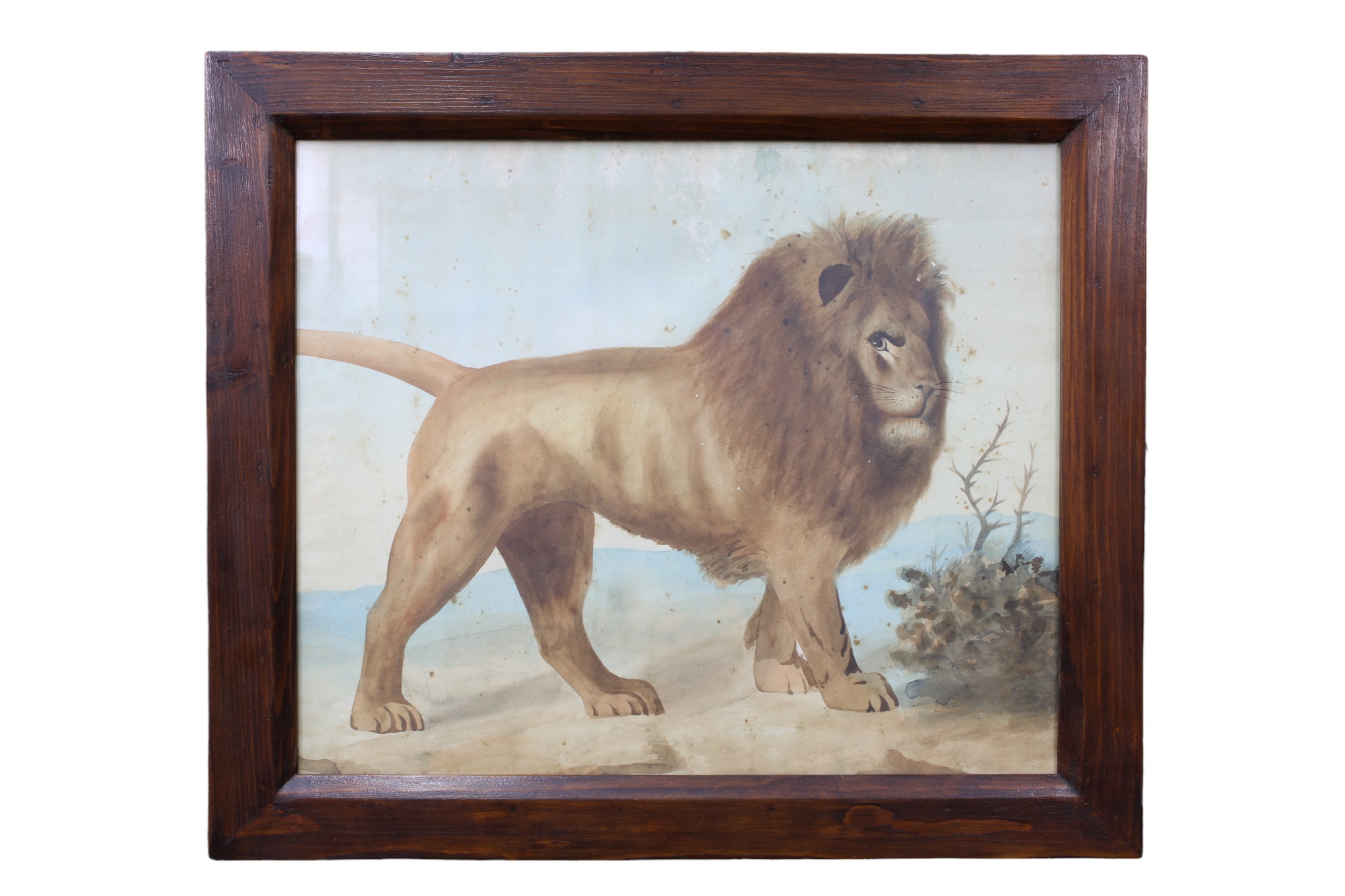 ACQUERELLO SU CARTA raffigurante leone dentro cornice in legno, difetti scuola italiana XIX secolo h cm 49 x 60/ cornice h cm 63 x 73,5