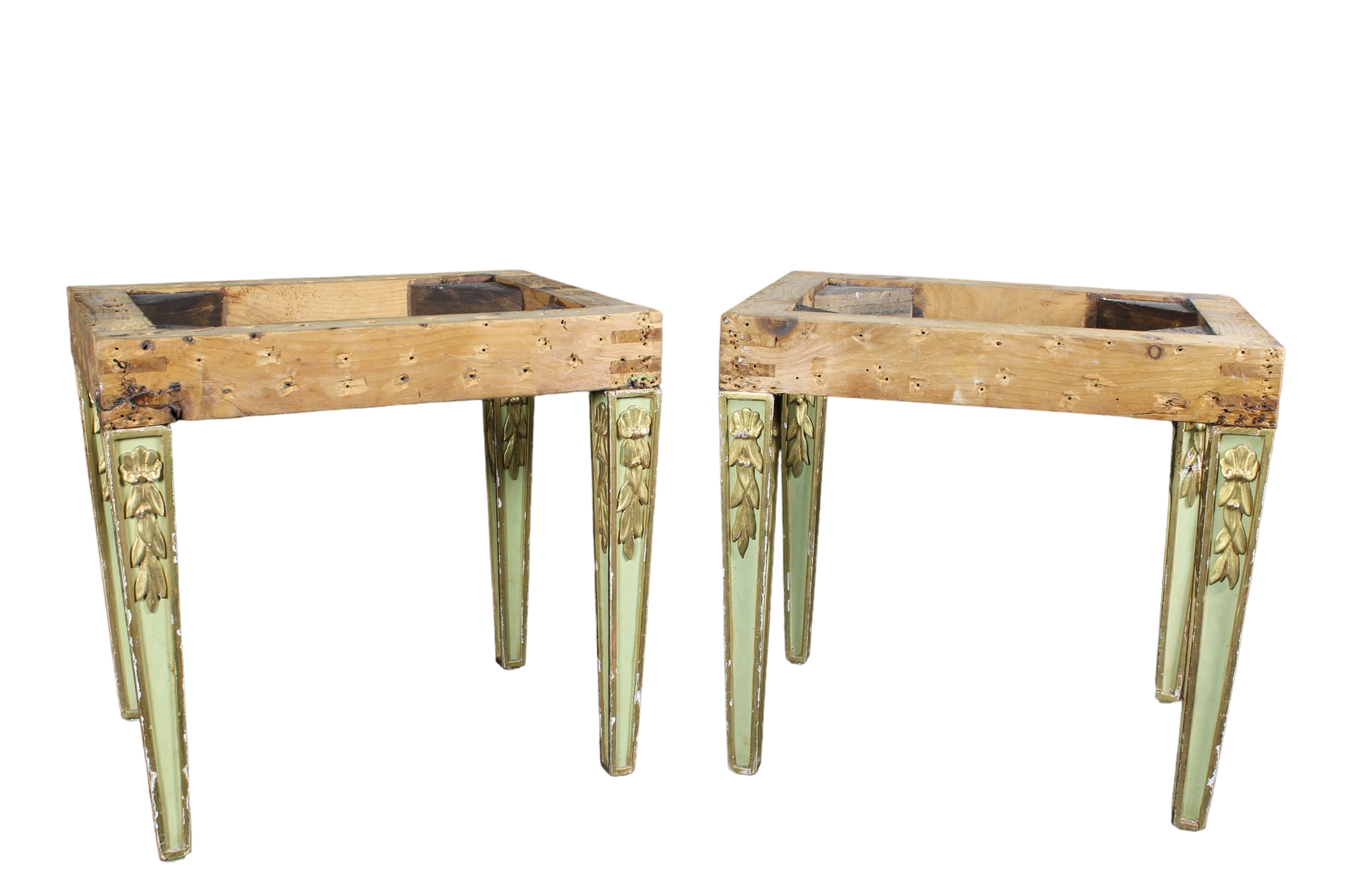 COPPIA PANCHETTE LUIGI XVI in legno finemente scolpito a motivi floreali laccato e dorato ad oro zecchino Sicilia primi XIX secolo h cm 40 x 43 x 33