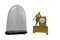 OROLOGIO DA TAVOLO in bronzo finemente cesellato e dorato a mercurio raffigurante personaggio firmato AGER A' AVIGNONE dentro campana in vetro Francia XIX secolo h cm 35 x 24 x 10 / campana h cm 46 x 33,5 x 16,5