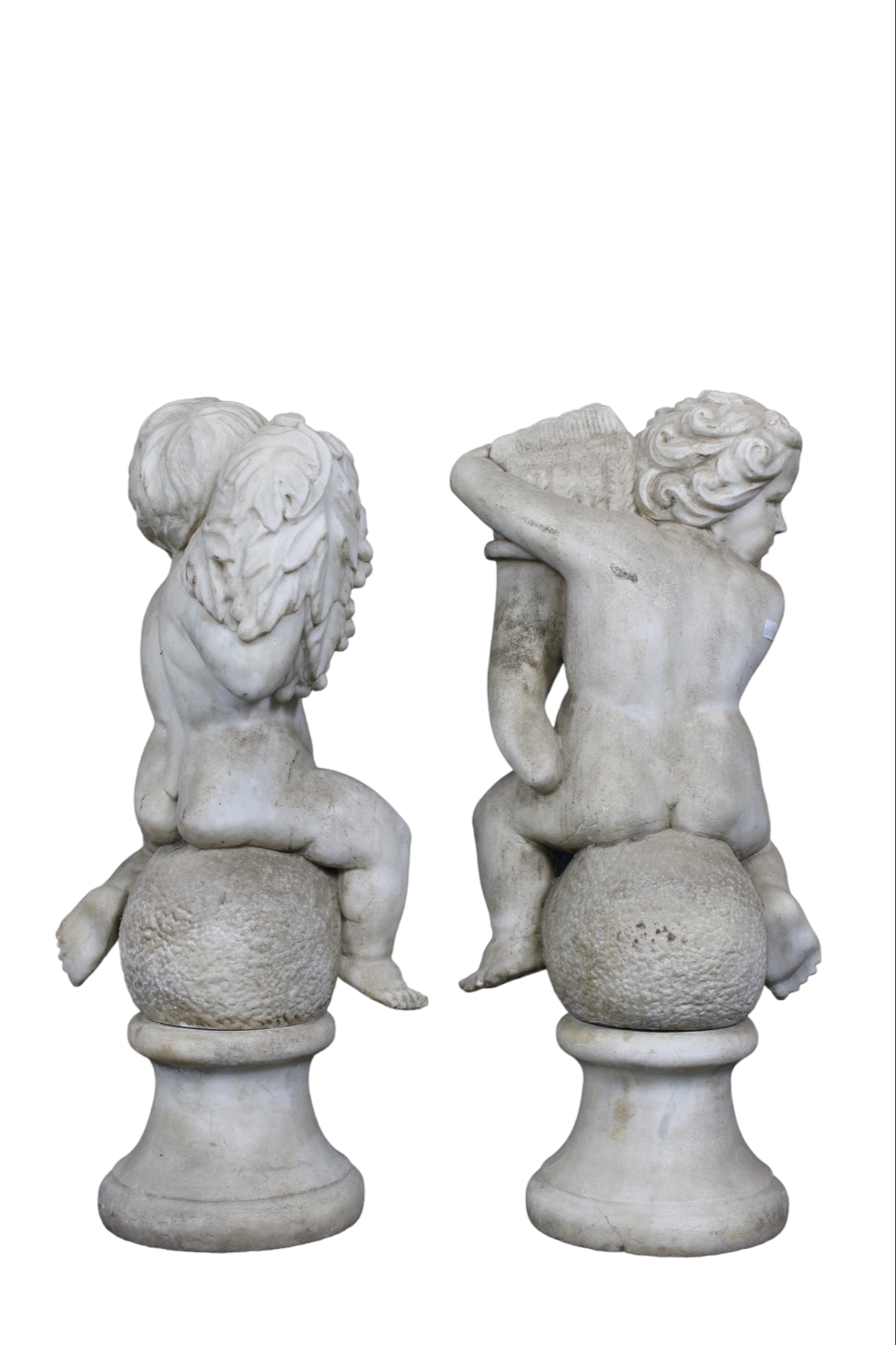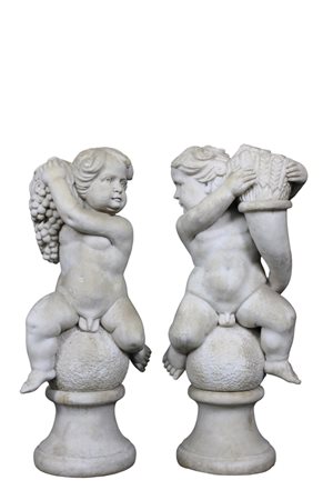 COPPIA DI SCULTURE in marmo bianco raffigurante allegoria di putti maestranze italiane XIX secolo h cm 80 x 38