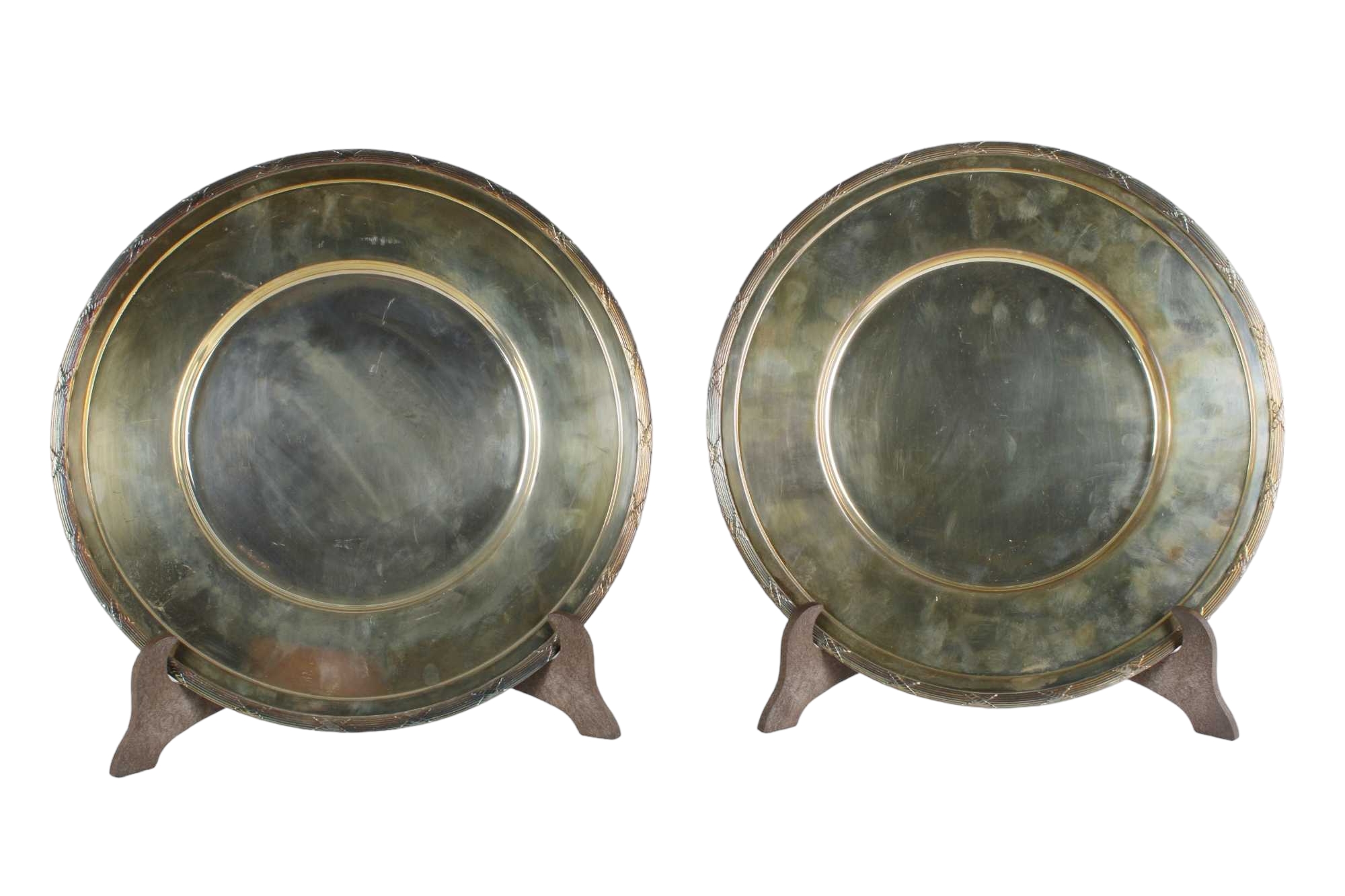 2 SOTTOPIATTI in sheffield cesellato Inghilterra cm Ø 31,5