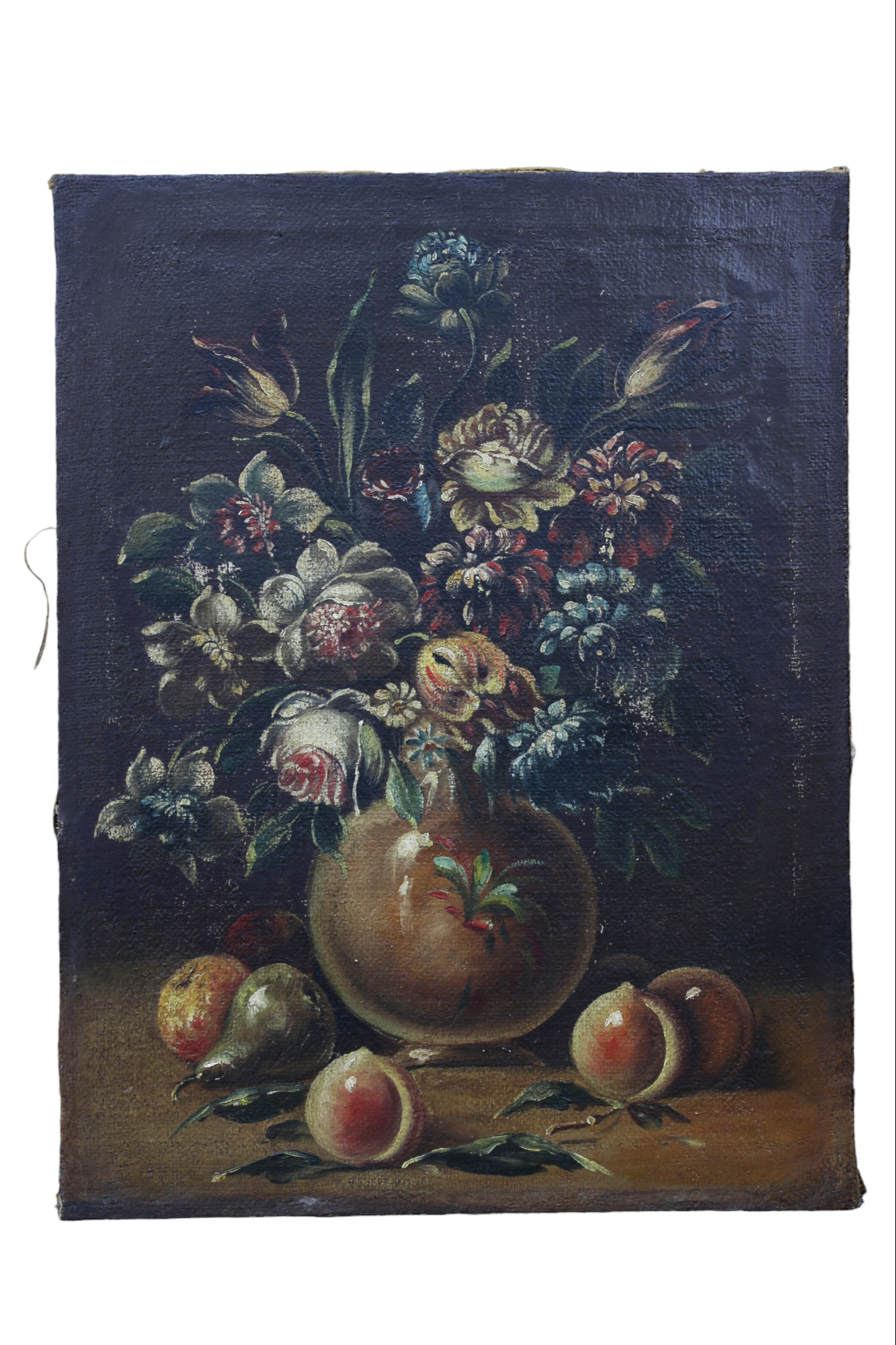 OLIO SU TELA raffigurante natura morta con fiori e frutti scuola italiana XIX secolo h cm 65 x 50