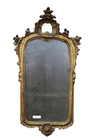 SPECCHIERA LUIGI XV in legno finemente scolpito e dorato ad argento e mecca Sicilia XVIII Secolo h cm 84 x 46