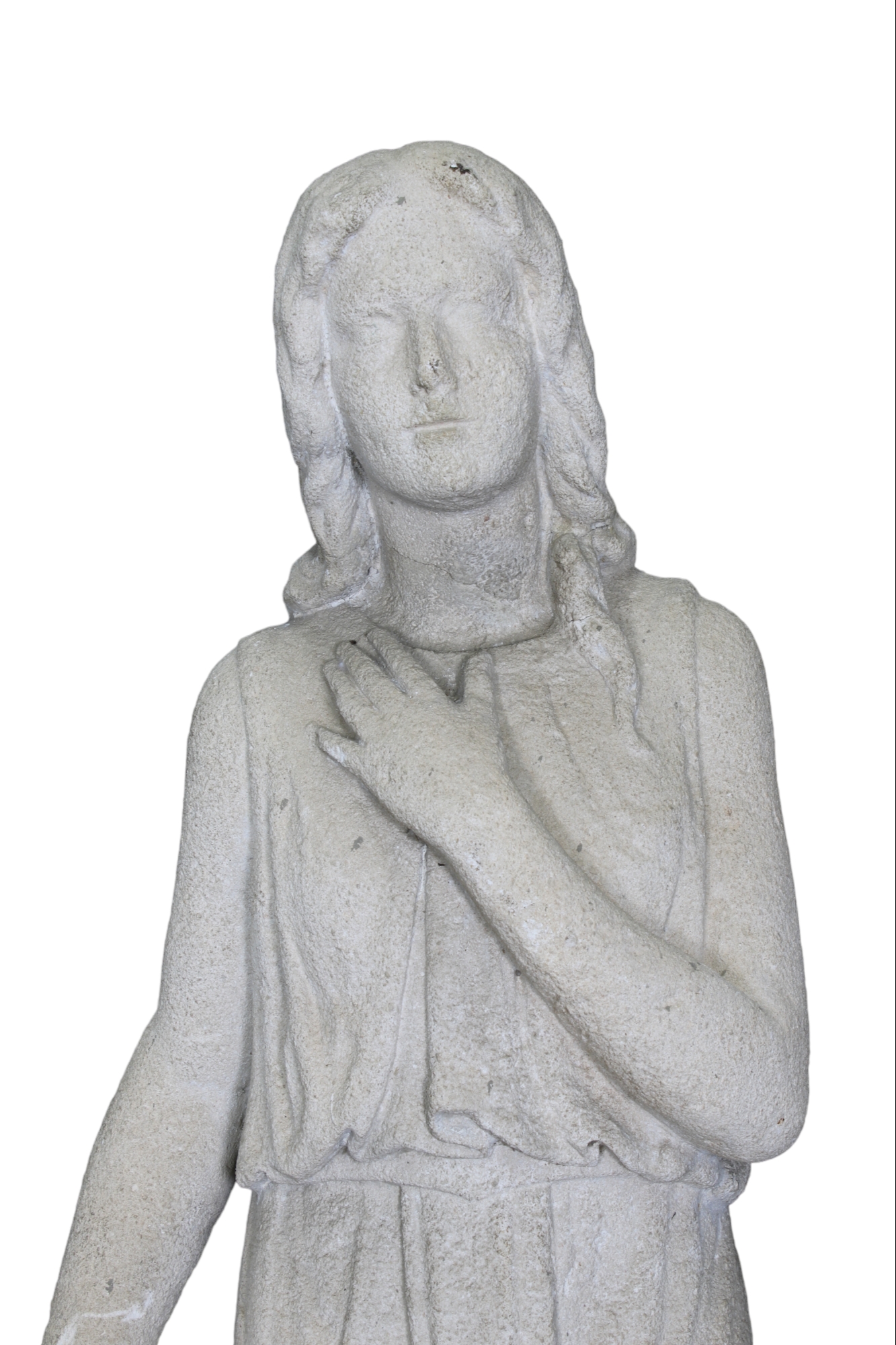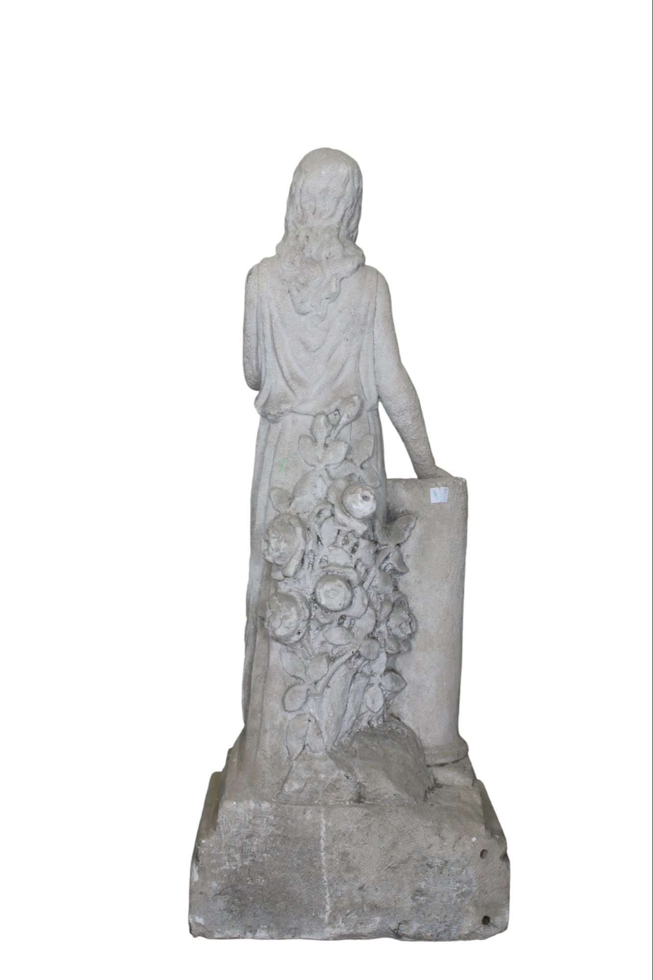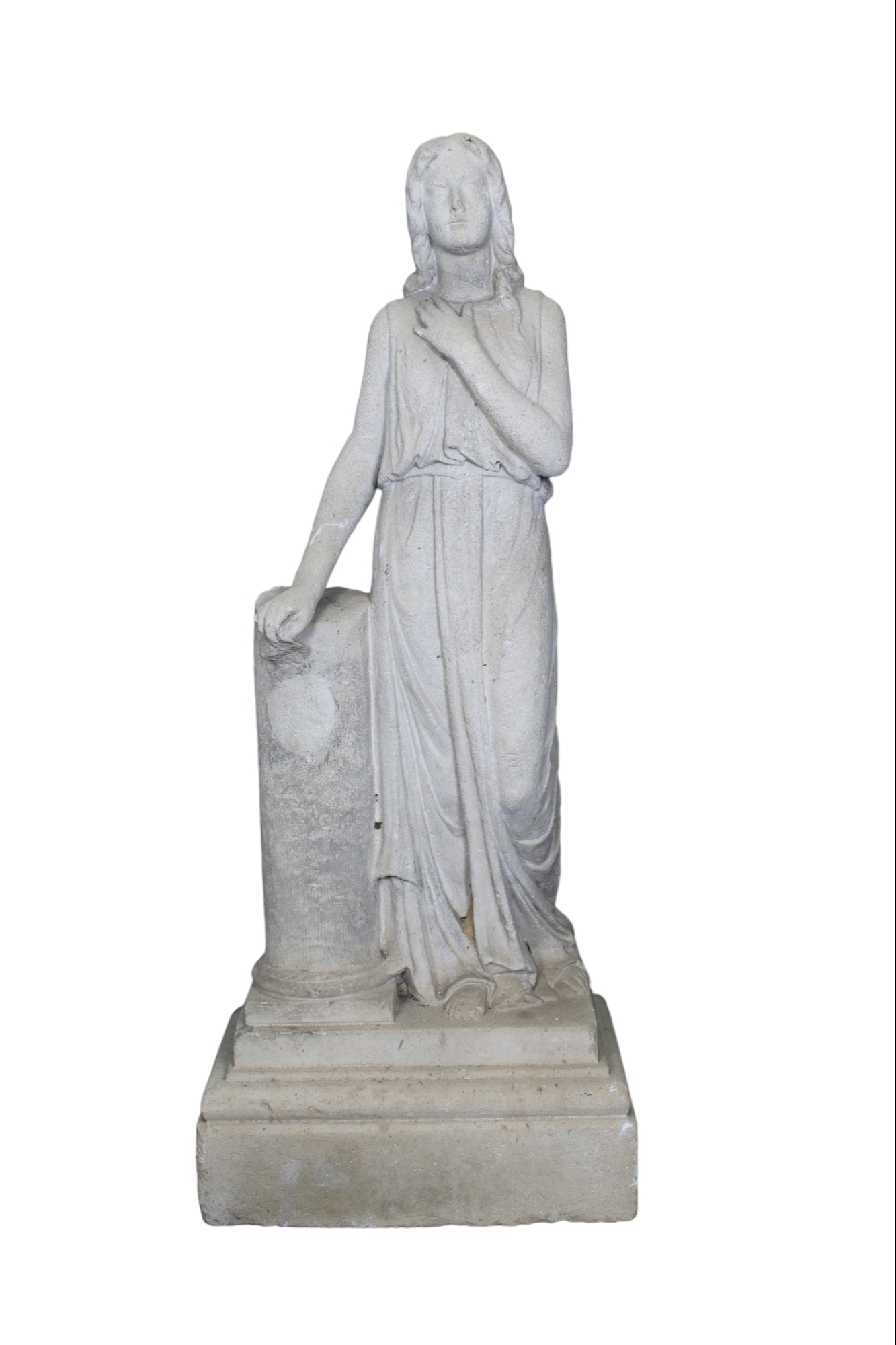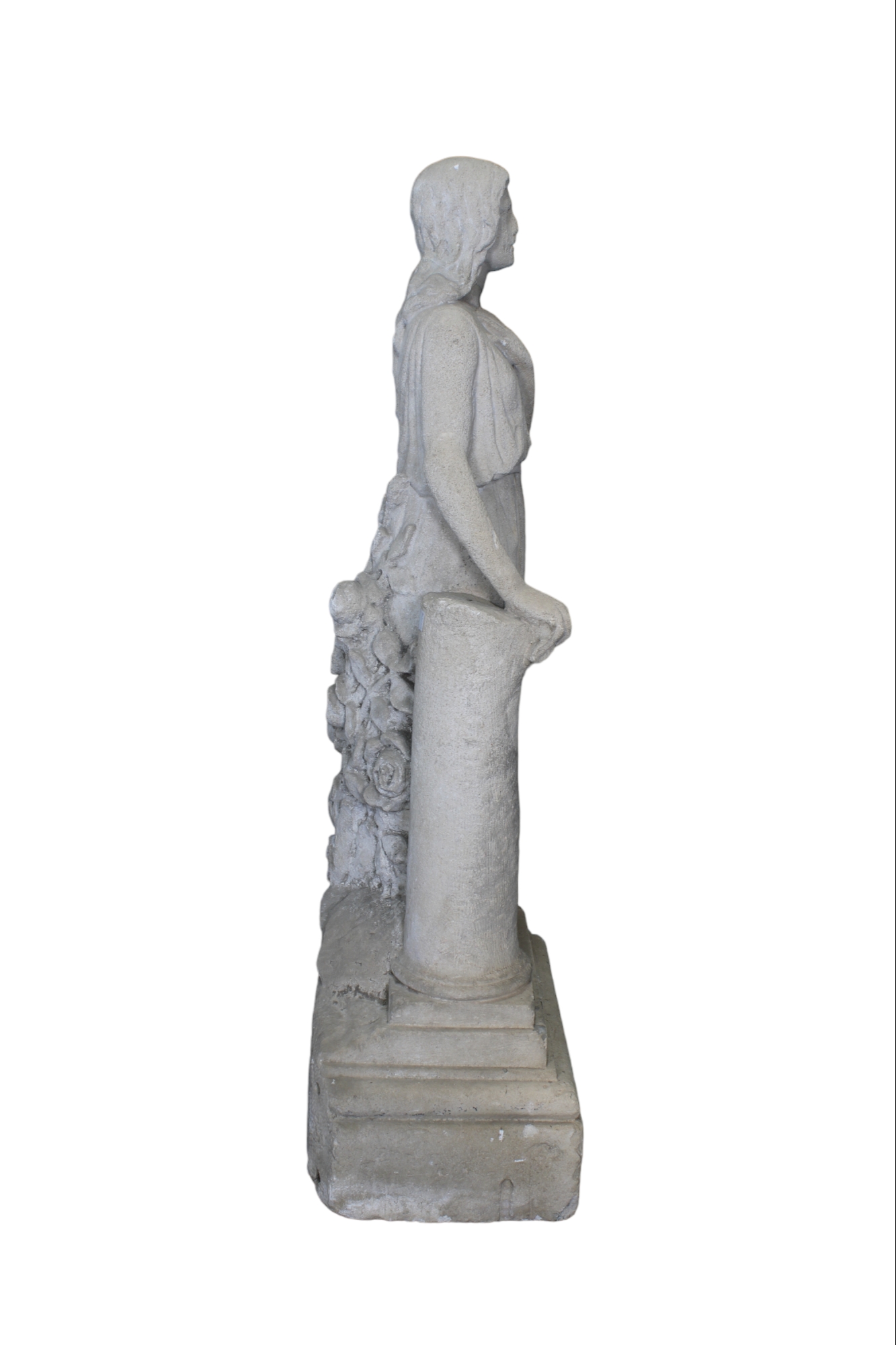 SCULTURA in pietra raffigurante figura femminile poggiata sulla colonna maestranze italiane XIX secolo h cm 140 x 58 x 38