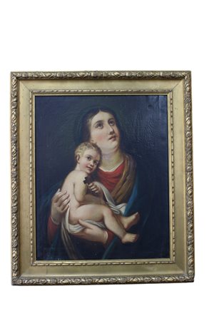 OLIO SU TELA raffigurante Madonna con Bambino dentro cornice in legno dorato scuola italiana fine XVIII primi XIX secolo h cm 66 x 54 / cornice h cm 88 x 74