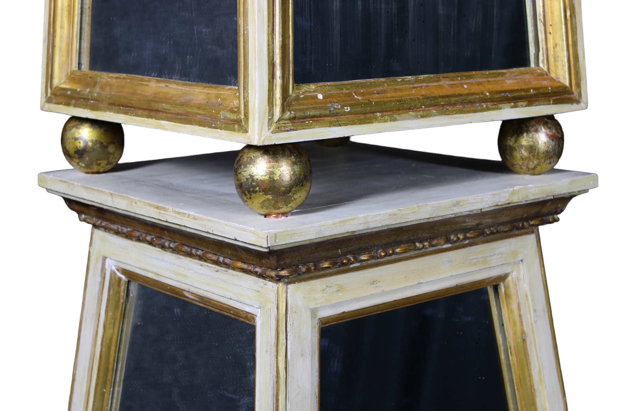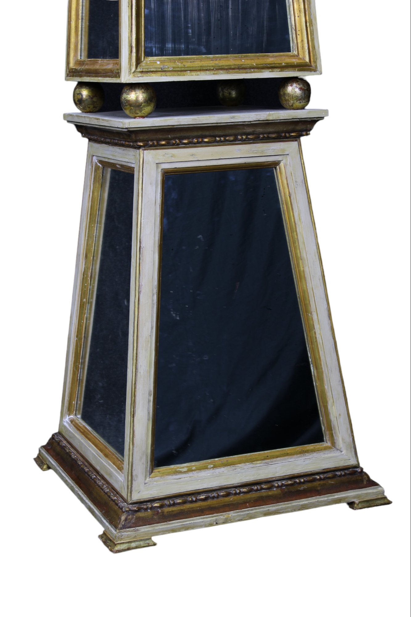 COPPIA DI OBELISCHI in legno laccato e dorato ad argento e mecca arricchita da specchi Sicilia XIX secolo