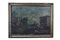 OLIO SU TELA raffigurante scorcio di paese montano con personaggi e animali dentro cornice coeva in legno dorato ad argento e mecca scuola napoletana primi XVIII secolo h cm 73 x 100 / cornice h cm 92 x 114