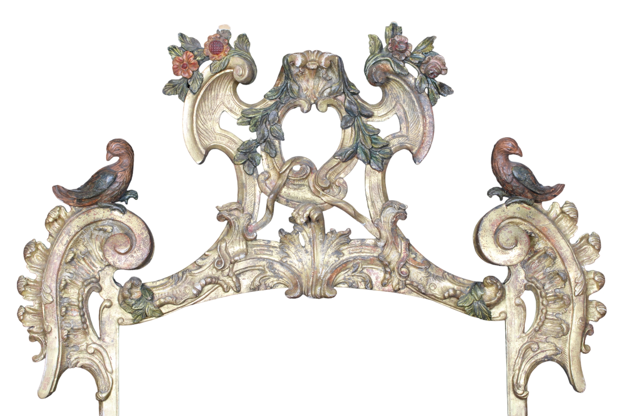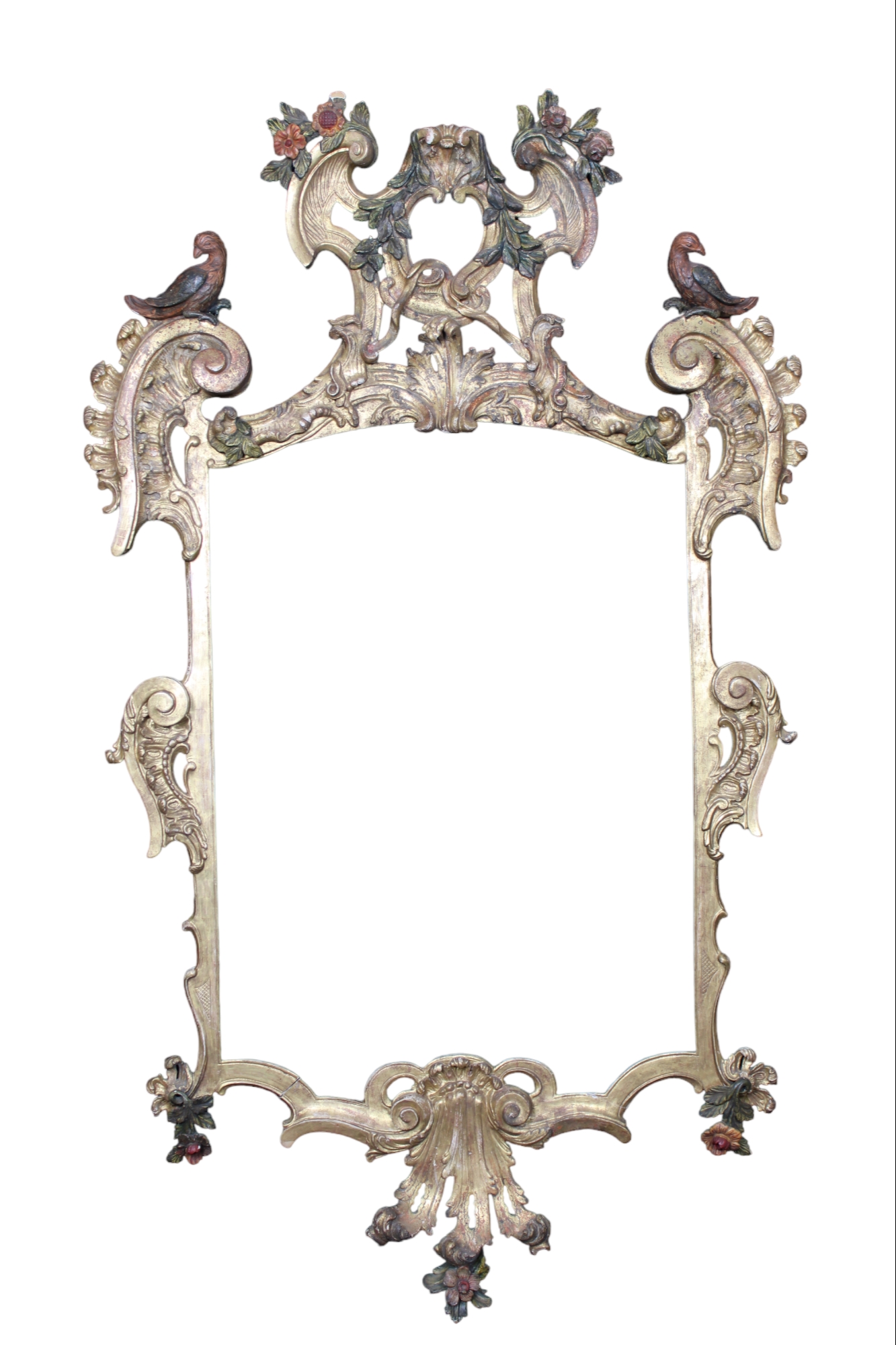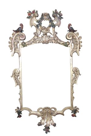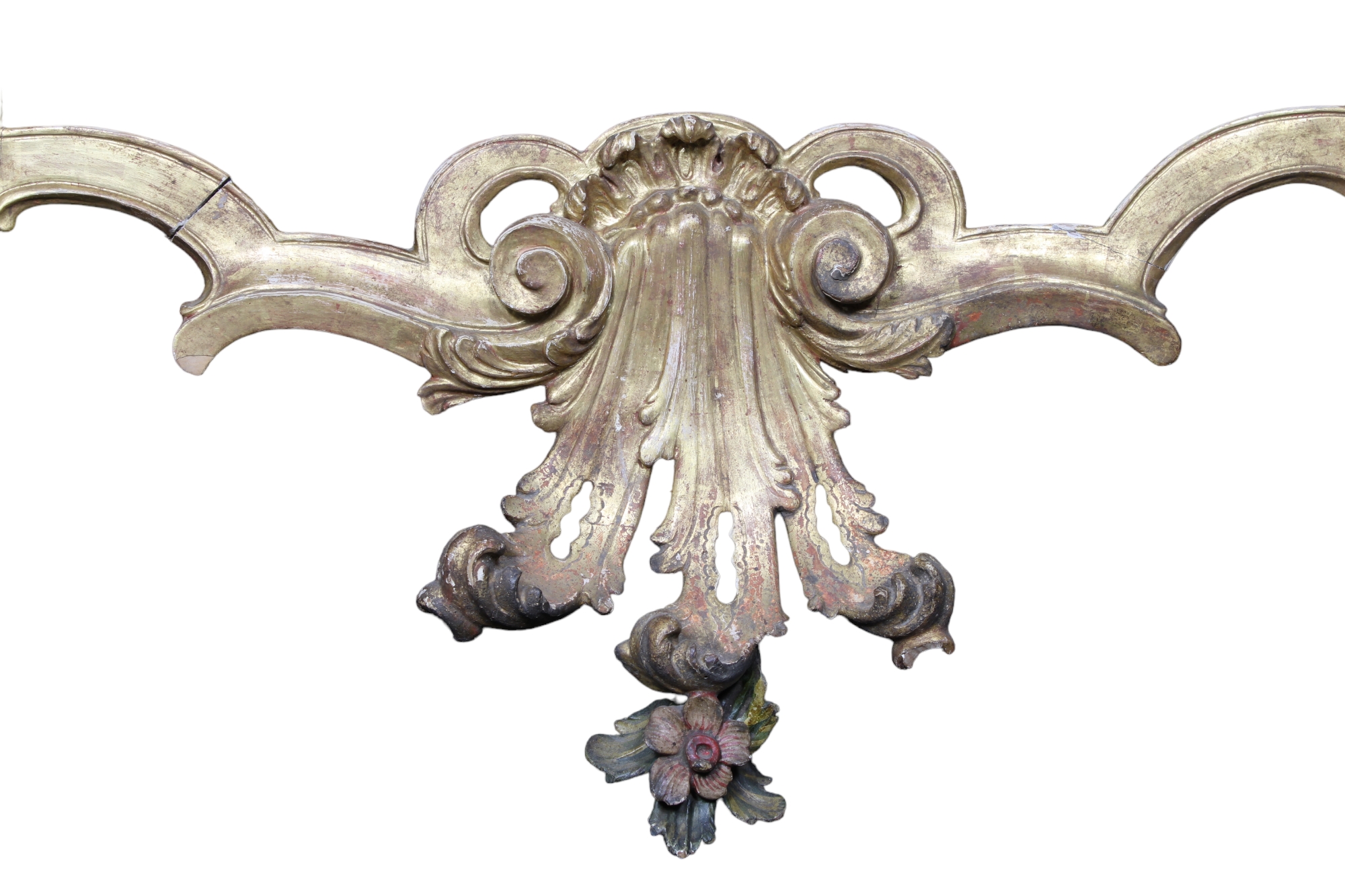 IMPORTANTE SPECCHIERA in legno finemente scolpita dorata e policroma Sicilia XVII/XVIII secolo h cm 95 x 103