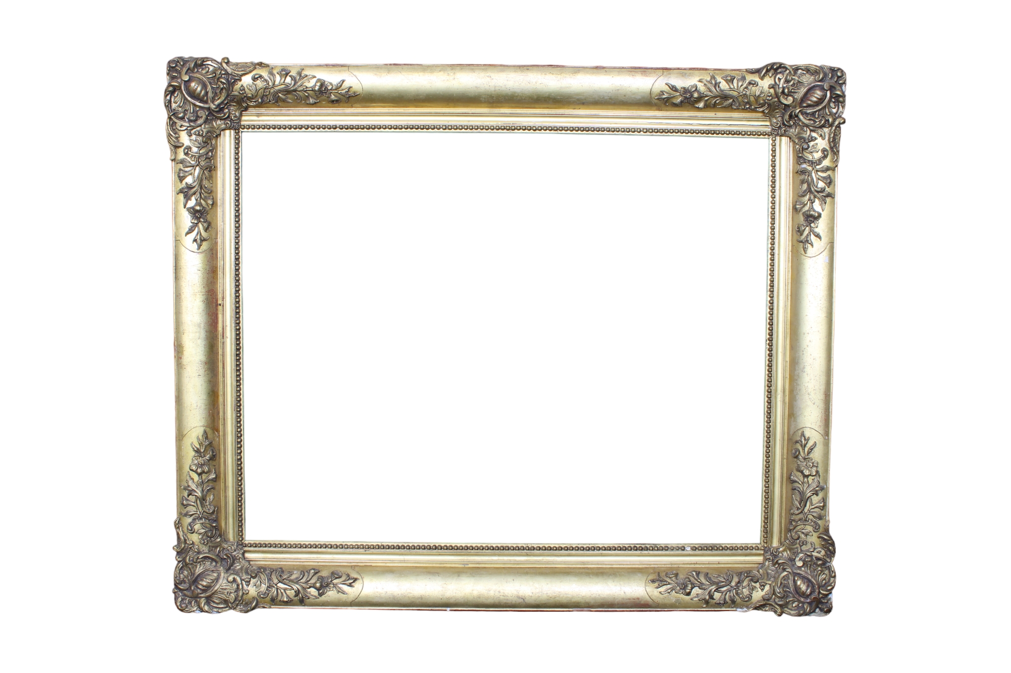 ELEGANTE CORNICE in legno con fregi in pastiglia dorata a oro zecchino Sicilia XIX secolo h cm 105 x 138