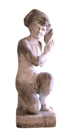 SCULTURA in marmo bianco raffigurante Il ragazzo con la conchiglia Sicilia XX secolo h cm 91 x 30 x 35