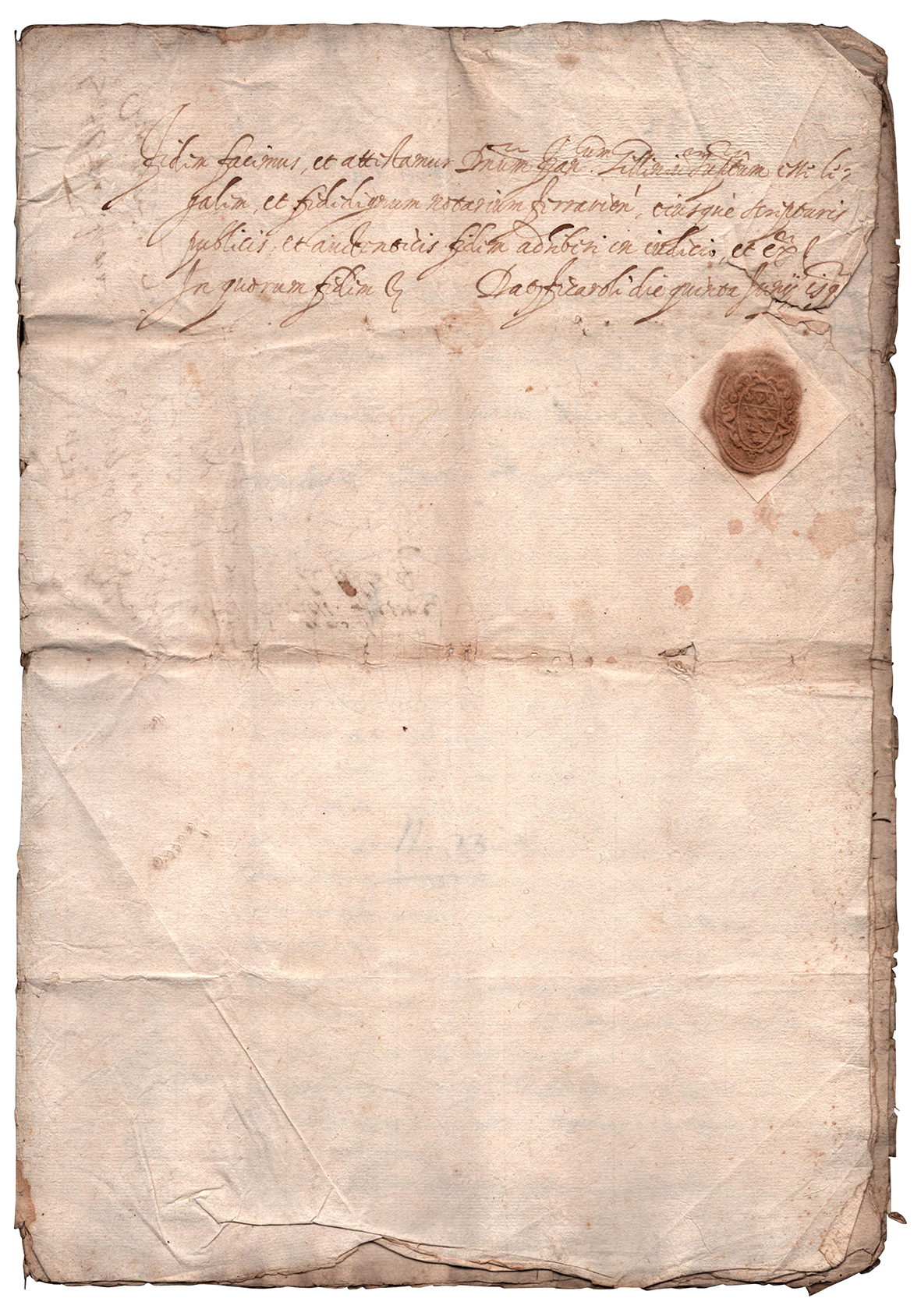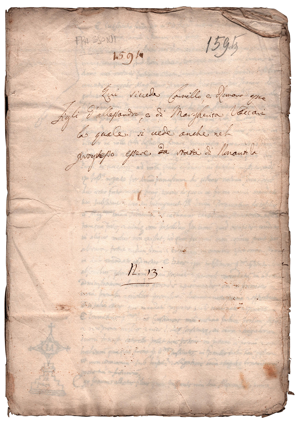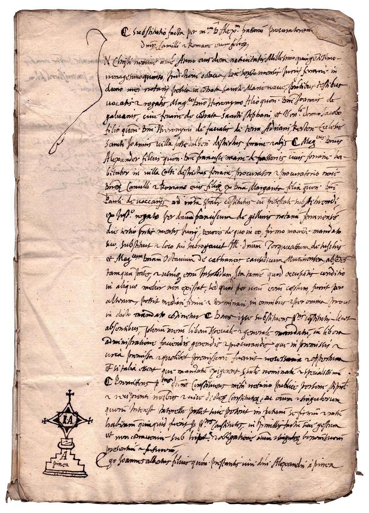 Atto notarile relativo al lascito dei coniugi Alessandro e Margherita Vaccari ai figli Camillo e Romano. Segni notarili ai margini ed elegante clausola con timbro a secco.