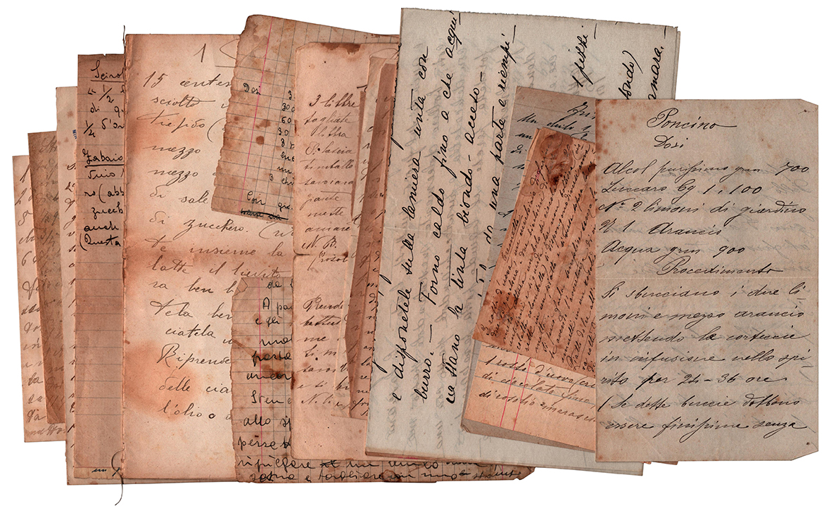 Insieme di circa 20 ricette di cucina inviate da Padova in uno scambio epistolare famigliare. Tra le ricette presenti: poncino, zabaione di cioccolato, vov, frittelle, rosolio di latte, pinza di quaresima etc. "Sciroppo di marene: 1/2 litro di vino buono rosso, 1/2 kg di zucchero, e il succo di quattro limoni. Si fa bollire tutto per circa 1/4 d'ora...". Per un totale di 53 pagine in vario formato.
