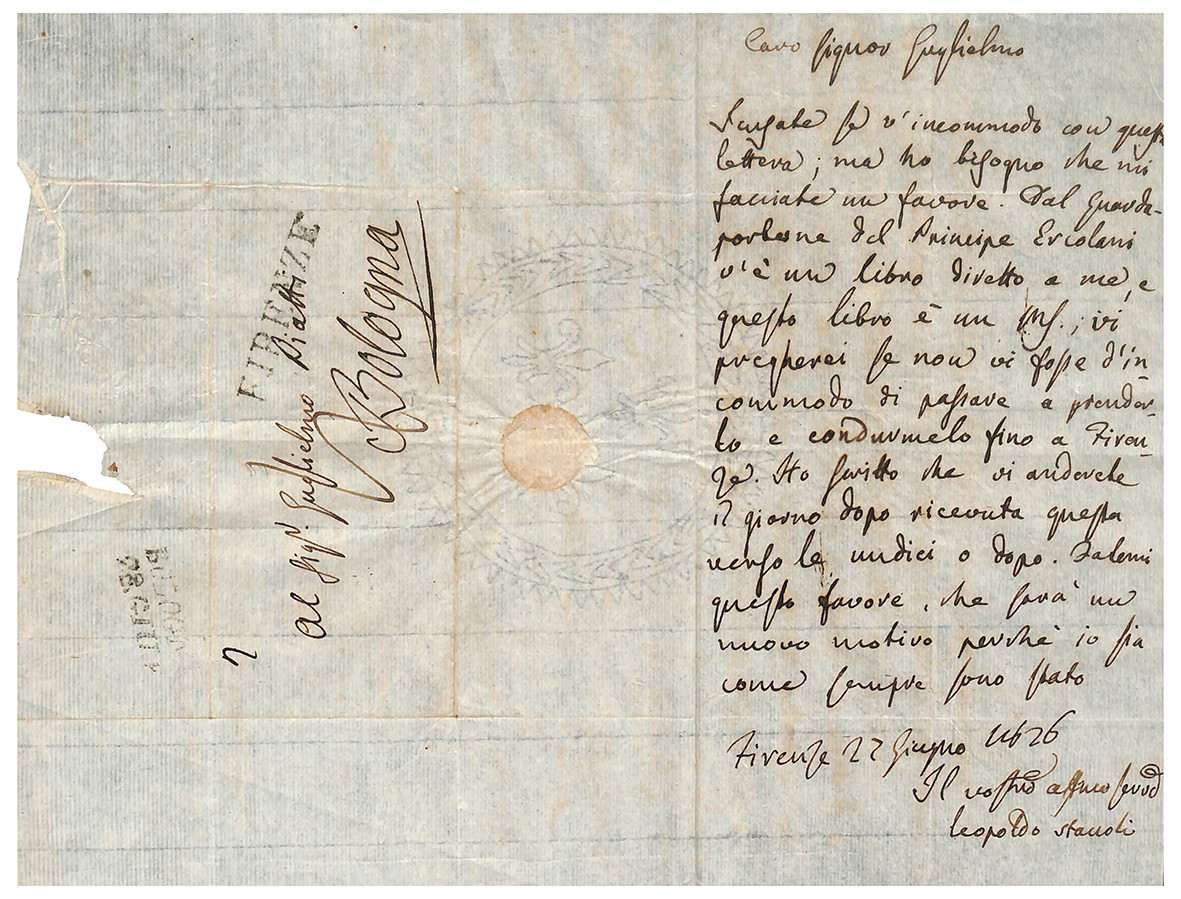Leopoldo Staccioli (Urbino 1803 - ivi 1832), Lettera a Guglielmo Piatti - Famiglia Hercolani