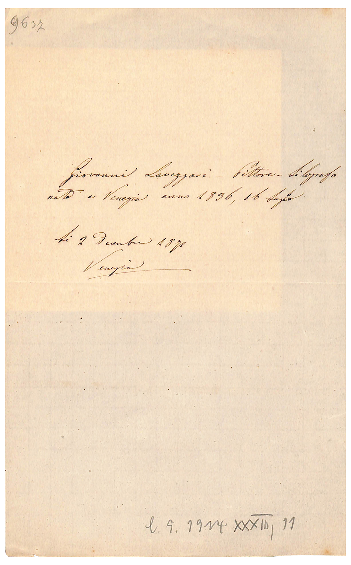 Firma/data: li 2 dicembre 1871 Venezia