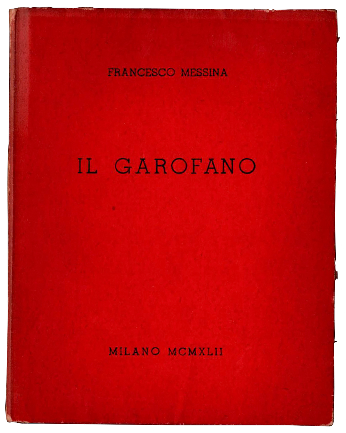 Opera poetica dello scultore Francesco Messina. 'Il Garofano'. Milano, Officine Grafiche Esperia, 1942. All'Insegna del pesce d'oro. Esemplare n° 28 su carta uso mano (di 215). Cm 10x8. A cura di Giovanni Scheiwiller. pagine Br. ed. con sovraccoperta. Con un ritratto fotografico di Messina. Prima edizione. Dedica autografa firmata: "ad Enrico Emanuelli con viva amicizia". Manuelli fu scrittore e giornalista italiano. Francesco Messina è considerato dalla critica tra i più grandi scultori figurativi del Novecento italiano, insieme a Giacomo Manzù, Arturo Martini, Marino Marini, Felice Mina. È l'autore di alcuni dei maggiori monumenti del Novecento italiano: 'Santa Caterina da Siena', collocata sul lungotevere di Castel Sant'Angelo; il Cavallo morente della RAI; il 'Monumento a Pio XII' nella Basilica di S. Pietro.