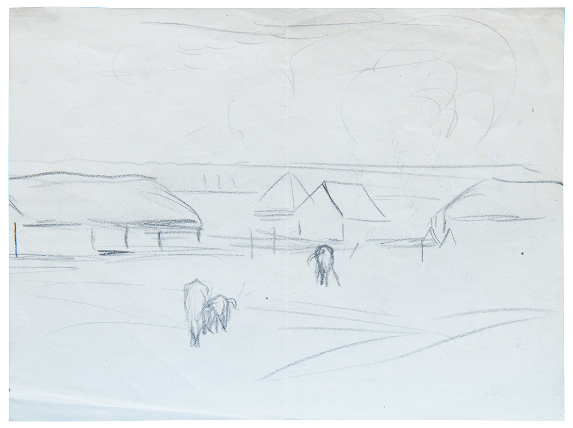 Yuriy Vladimirovic Matuševskij (1930 - 1999), attribuito a. Scorcio di villaggio
