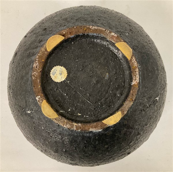Cachepot in terracotta smaltata nei toni del bruno e del beige. Italia, anni '60. (d cm 20) (difetti e restauri)