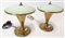 Coppia di lampade da tavolo in ottone con diffusore in vetro lattimo verdino. Italia, anni '50. (h cm 18) (lievi difetti)