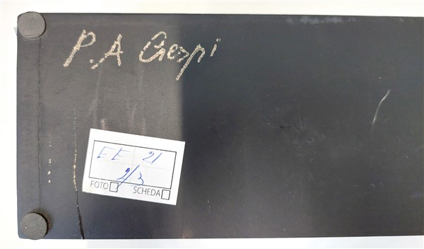 Lotto composto da tre sculture in ceramica bianca lucida entro supporto ligneo verniciato nero e opaco. Italia, 1964. Firmati "P.A Crespi" e datati. (h max cm 32) (lievi difetti)