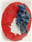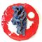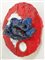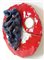 Tondo in terracotta decorato a graffito e a rilievo con coppia di figurine antropomorfe, smaltato in rosso, bianco e blu sotto vetrina. Italia, secolo XX. (d cm 22) (lievi difetti)